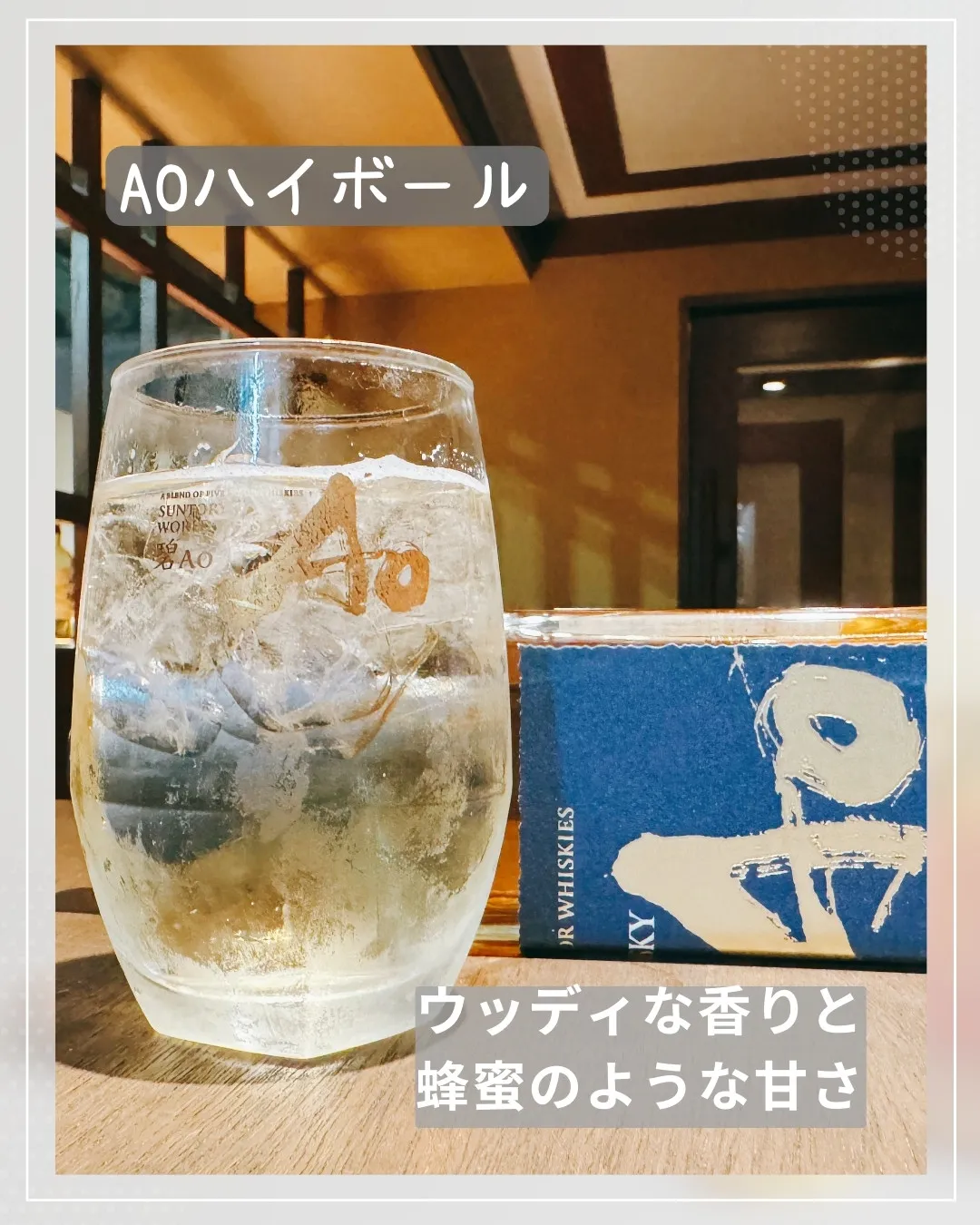 The woody aroma of the AO Highball, along with the savory aroma of the grilled meat, will further enhance your appetite. The honey-like sweetness spreads in your mouth, and it goes perfectly with grilled meat. Enjoy the delicious flavor of the grilled meat as it spreads in your mouth with an AO Highball in one hand🍖🍻. This combination makes your special mealtime even more luxurious, and you will enjoy a luxurious moment like never before! 😊