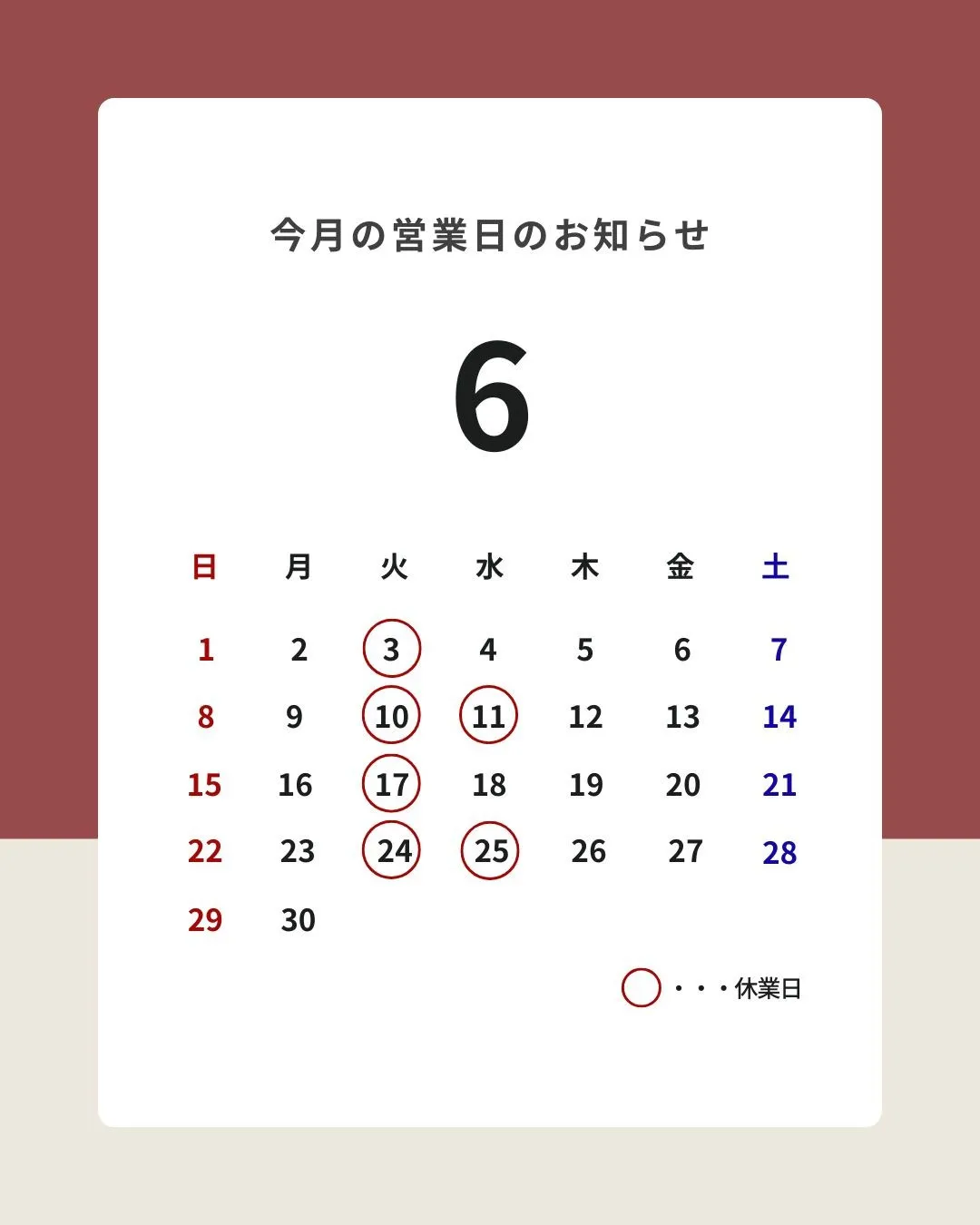 📢【6月の営業日のお知らせ】📢