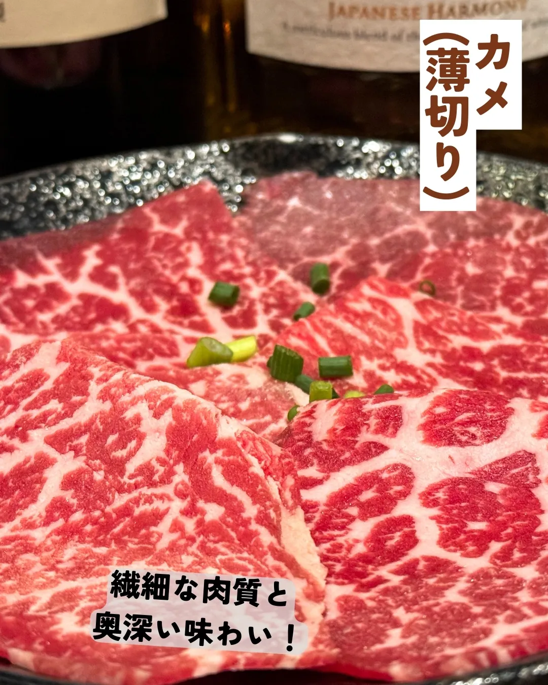 🔥 本日のおすすめメニューは、黒毛和牛のカメ薄切りです!🐄✨ 肉の芸術品と称されるこの部位は、繊細な肉質と奥深い味わいで、一口ごとに口の中でとろける幸せをご提供いたします。🥢🍽️