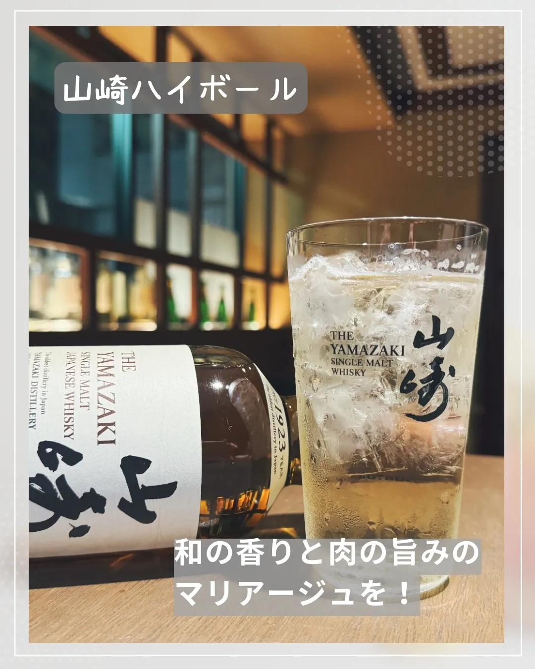 この特別なハイボールは、山崎の豊かなウィスキーが持つ和の香りと、黒毛和牛のジューシーな旨みが絶妙にマリアージュします。🥩🍷🔥まるで日本の自然を感じるような繊細な味わい。✨
