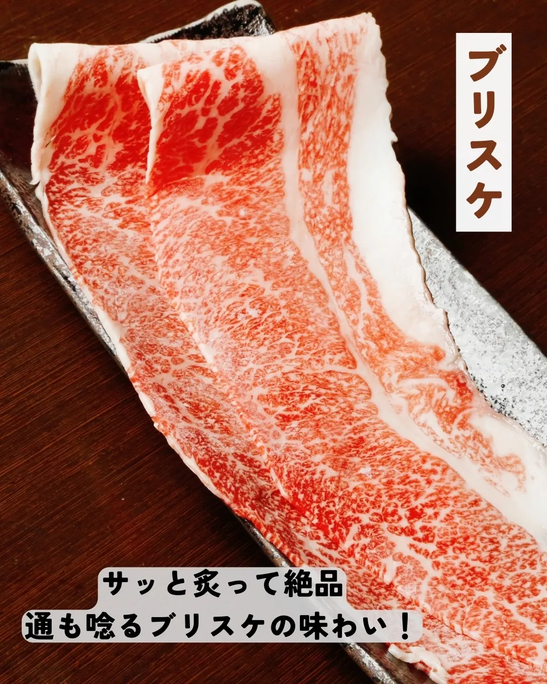 こんにちは、焼肉ファンの皆様!😊本日ご紹介するのは、特別な一品✨黒毛和牛のブリスケ薄切りです。🔥その絶妙なサシと柔らかさは、口の中でとろける夢のような体験をお約束します。サッと炙るだけで香ばしい旨味が広がり、肉のプロも思わず唸るその味わいは、一度食べたら忘れられません!🍽️