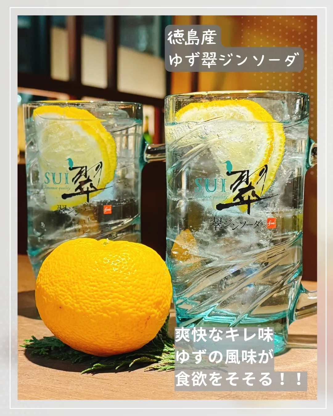 🍋本日のおすすめドリンクは、徳島産ゆず翠ジンソーダ!✨この爽...
