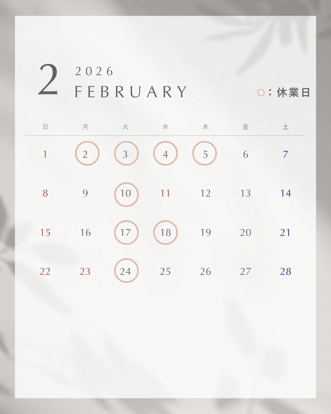 📅 2月の店休日 ━━━━━━━━━━━━━━ ・2/2(月) 〜 2/5(木) 🚩4連休 ・毎週火曜日(10日・17日・24日) ・2/18(水) ━━━━━━━━━━━━━━
