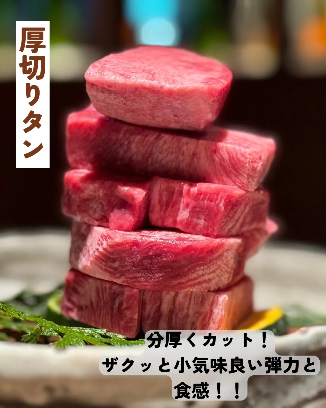 新鮮な状態で丁寧に下処理することにこだわり、柔らかな食感と濃厚な旨味のタンを提供しています。厳選した黒毛和牛のタンを独自の調理法で、表面はパリッと香ばしく、内部はジューシーに仕上げています。秘伝のタレとの相性も抜群で、タンの旨味をさらに引き立てます。人気部位であるタンを黒川駅周辺で丁寧に調理します。