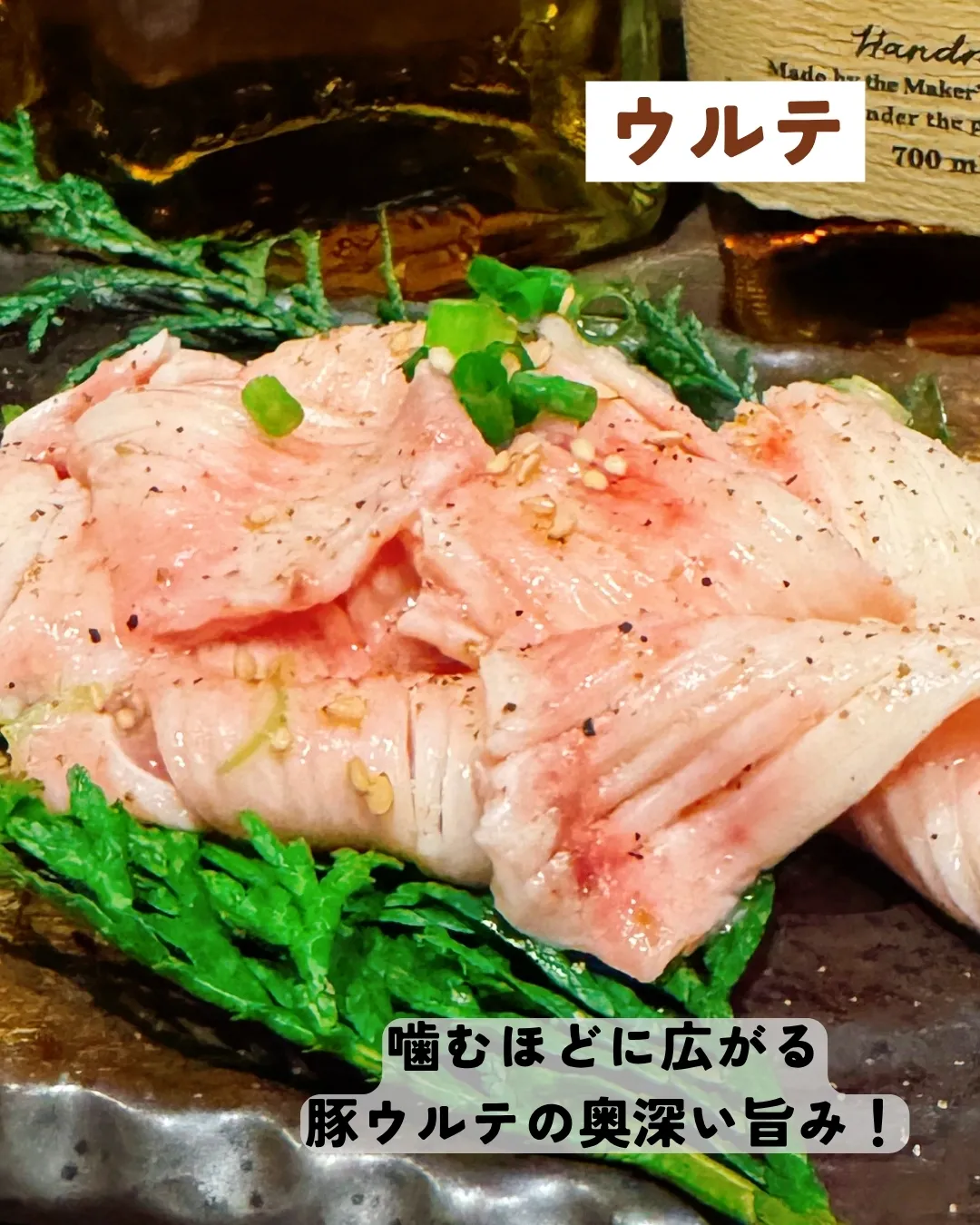 🥢 こんにちは、焼肉愛好家の皆様!本日のおすすめは、なかなか... 🥢こんにちは、焼肉愛好家の皆様!本日のおすすめは、なかなか他では味わえない特別な逸品🐷、「豚ウルテ」です。ウルテは豚の気管部分で、噛むほどに深まる旨みと独特な食感がたまりません✨。口の中でジュ…